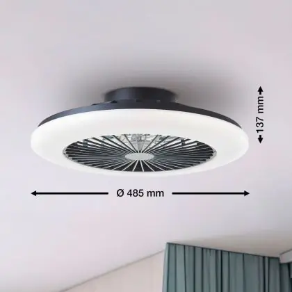 Beschreibung Brilliant Salerno Ventilator Plastik Metall Schwarz 36W 4700lm - 830-865 CCT+RGB | 485mm - Fernsteuerung Dimmbar