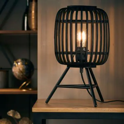 Brilliant Tischlampe Holzrow Metall Bambus Schwarz Holz | Geeignet für 1x E27