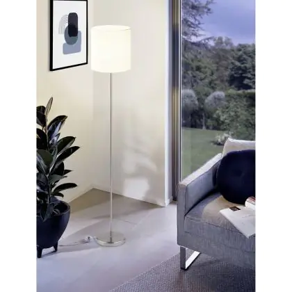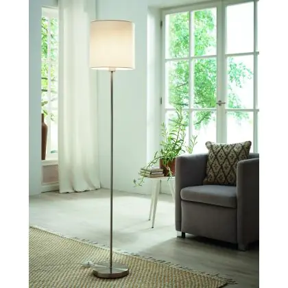 Beschreibung Eglo Stehlampe Pasteri Stahl Satin-Nickel Weiß | IP20 - Geeignet für 1x E27