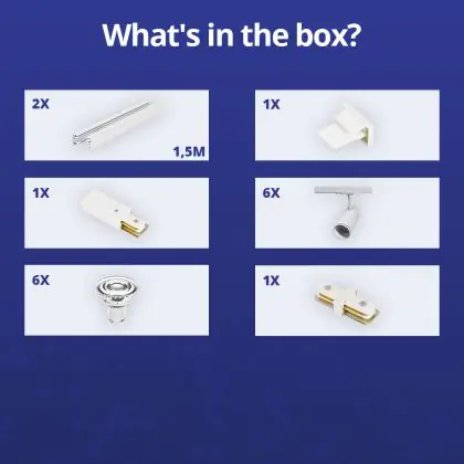 | Herstellername | Complete Straight 3-meter 1-Phase Track Set White incl. 6x Spot fixture + GU10 2700K 3W Dim – 2x 1.5 | |