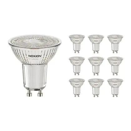 Die Mehrfachpackung 10x Noxion PerfectColor LED-Spot GU10 PAR16 4W 345lm 36D - 940 Kaltweiß | Höchste Farbwiedergabe - Dimmbar - Ersatz für 50W ist eine effiziente GU10 LED-Lampe und der perfekte Ersatz für Ihre konventionelle Halogenlampe mit 50W und einem GU10-Sockel, bei welchem die zwei Stifte einen Abstand von 10 mm zueinander haben. Zudem strahlt das Produkt Licht in der Farbtemperatur 4000K - Kaltweiß aus und punktet durch eine lange Lebensdauer.