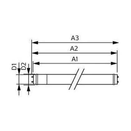 Wenn Sie zu LED wechseln, ist es wichtig, dass Sie die Länge und Wattanzahl Ihrer bisherigen Leuchtstoffröhre beachten. Diese 25.9 W LED-Röhre ersetzt eine konventionelle 58 W Leuchtstoffröhre mit einer Länge von 1514 mm. Der Durchmesser beträgt genau wie bei der konventionellen T8-Leuchtstoffröhre 25,4 mm. Auch der Sockel ist gleich: G13. Dieser kommt mit zwei Sockelstiften daher, die genau 13 mm auseinanderstehen.