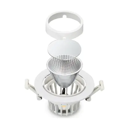 Der Philips Led-Spot Greenspace Accent Cardanic Aluminium Weiß 31W 3900lm 36D - 930 Warmweiß | 163mm - IP20 - Höchste Farbwiedergabe - Dali Dimmbar ist ein LED-Einbaustrahler, welcher Licht in der Farbtemperatur 3000K - Warmweiß ausstrahlt und durch eine lange Lebensdauer punktet. Die Einbauleuchte ersetzt konventionelle Halogenstrahler.
