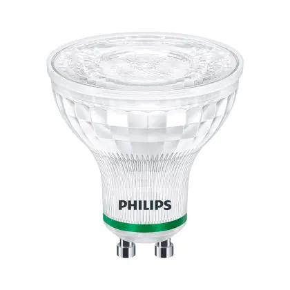 Die Lumeneffizienz des GU10 LED-Strahlers von Philips liegt bei lm/W. Herkömmliche GU10-Strahler hingegen besitzen ein Lumen zu Watt-Verhältnis von 10-15 lm/W. Somit sparen Sie allerhand Energiekosten. Hinzu kommt die lange Lebensdauer des GU10 LED-Strahlers von 50000. Somit spendet er deutlich länger Licht als ein herkömmlicher Halogenstrahler, der mit nur rund 3000 Stunden daherkommt. Das spart Ihnen zusätzlich Austausch- und Wartungskosten.